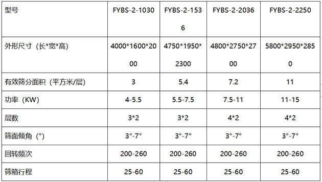 FYBS-1方形搖擺篩技術(shù)參數(shù):